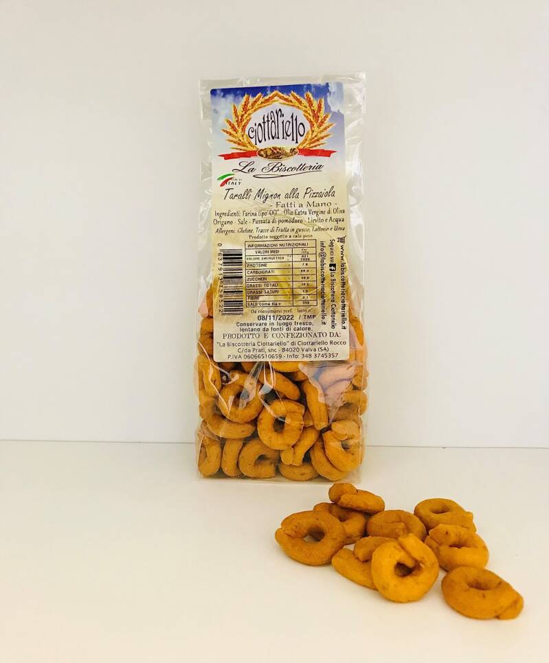 Ingredienti: Farina di grano tenero tipo “00”, Semola, Olio Extra Vergine di Oliva, Sale, Lievito e Acqua. Buste da 250 g.