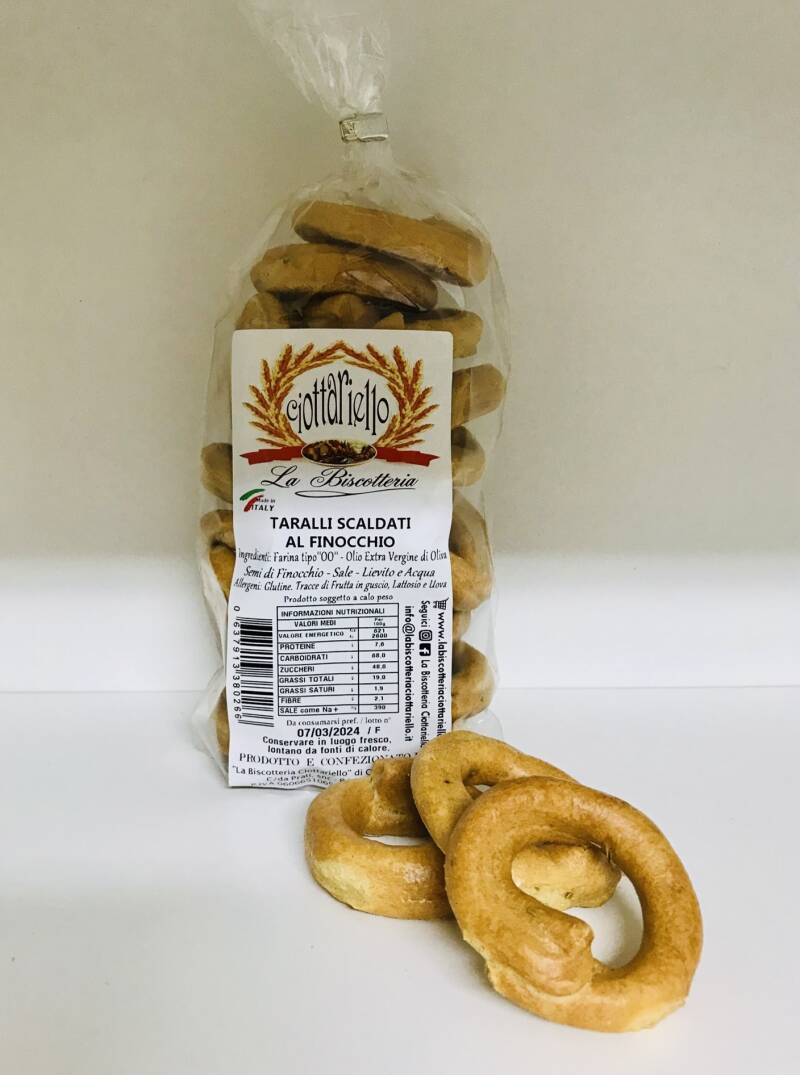 Taralli scaldati, fatti asciugare naturalmente e poi cotti a fuoco lento proprio come vuole la tradizione. A differenza degli altri tipi, questi